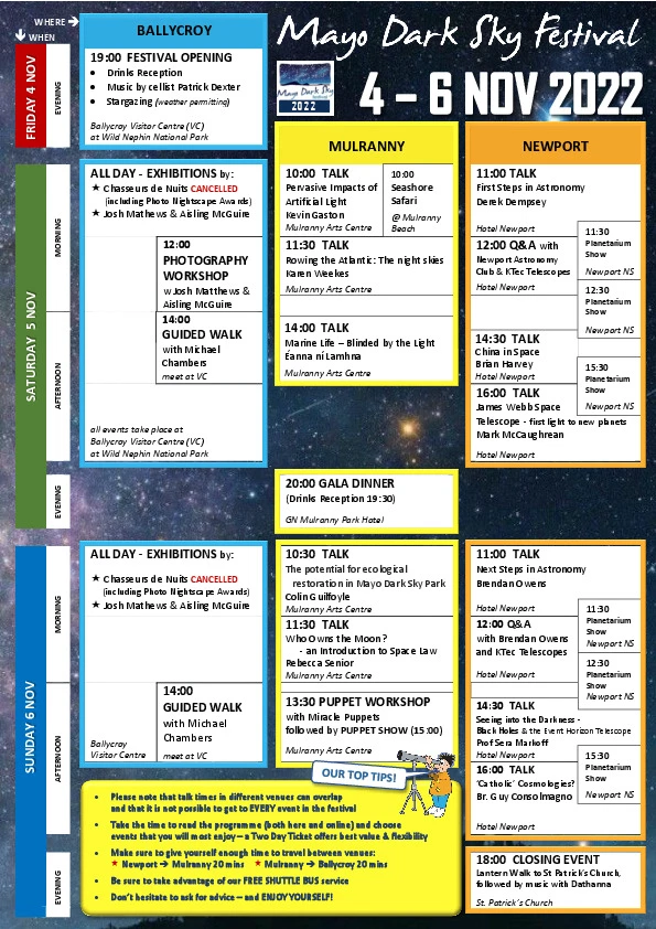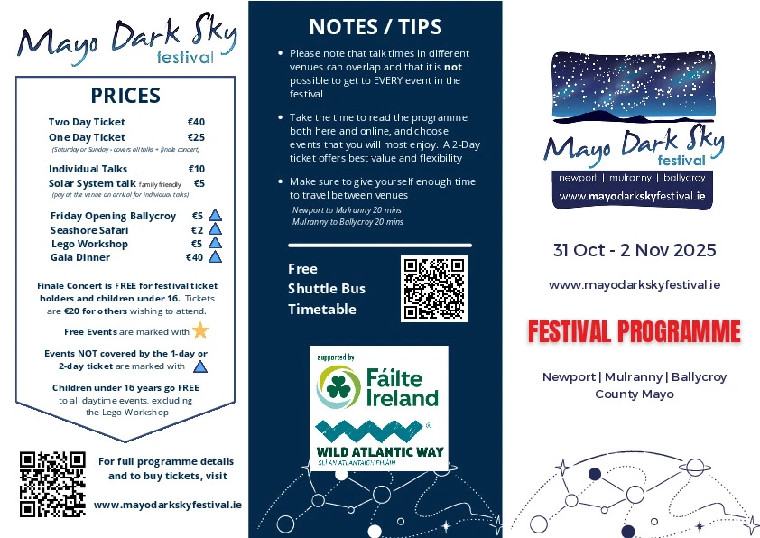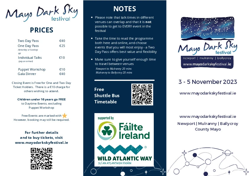 Explore the programme to discover talks, night-time events and experiences inspired by Mayo’s dark skies.